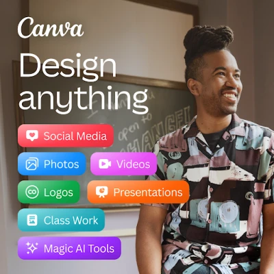 Canva is your free photo editor, logo maker, collage maker, and video editor in one editing app! Design digital art faster with powerful magic AI tools built-in, like the AI image generator that allows you to transform text to image in just a few minutes Make stunning social media posts and reels, presentations or flyers, create logos, CVs, photo collages and video collages from customizable templates.